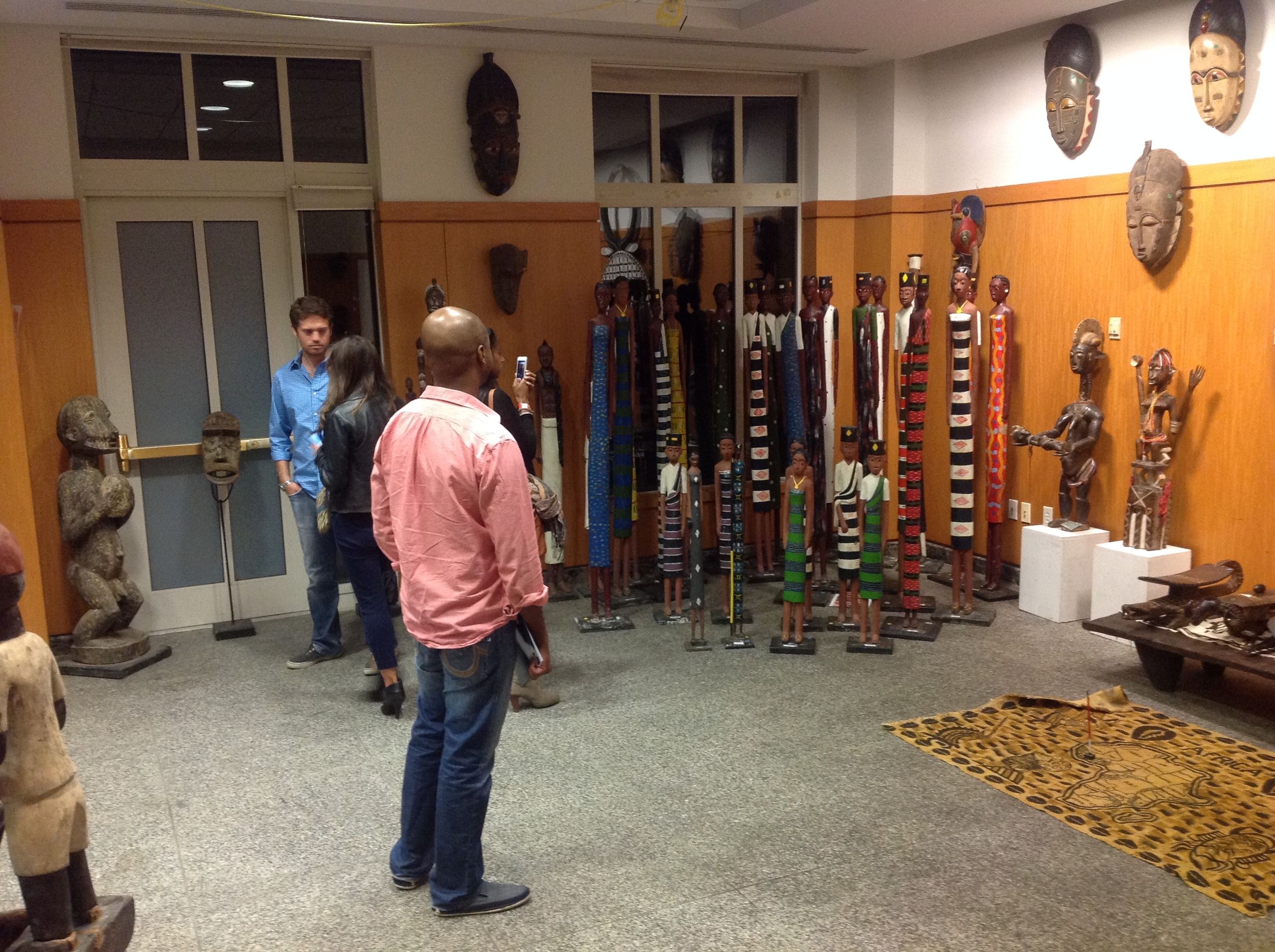 "Art on the Move" is an exhibit from the African art collection of Madame Fatou Sylla, which benefits her foundation, in Abidjan, Cote d'Ivoire. Fondation Fatou Sylla teaches and provides a self-sustaining market opportunity for artisans making traditional African art: masks, tapestry, statues, sculptures, and furniture.
